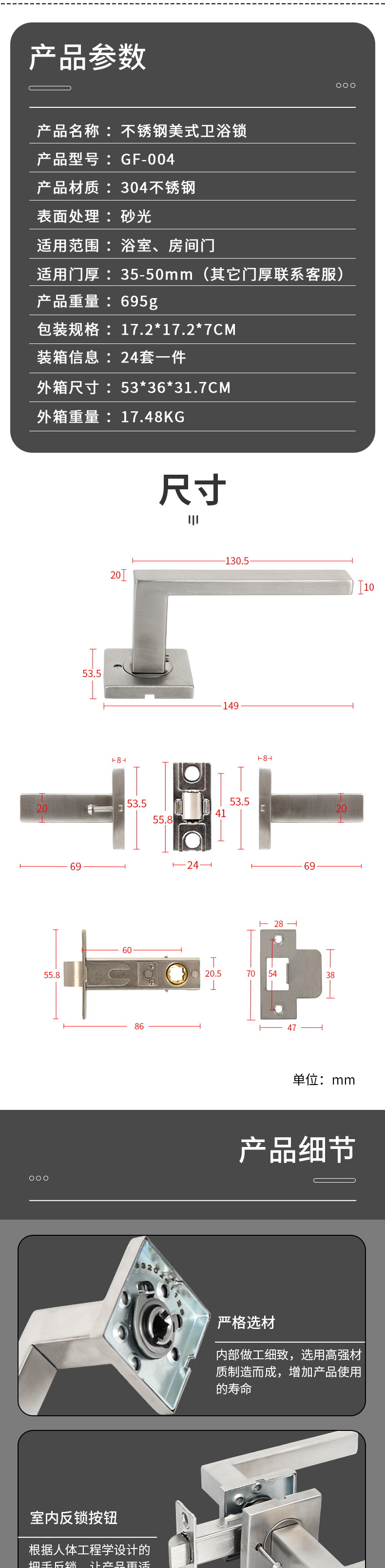 GF-004 跨境美式304不銹鋼衛(wèi)浴鎖