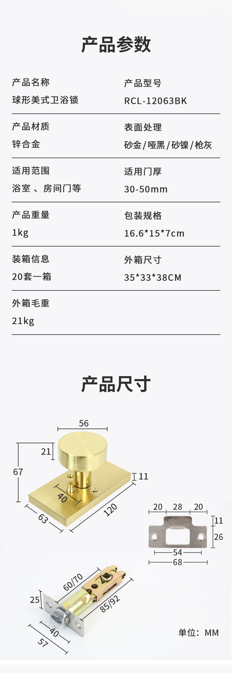 RCL-12063BK 美式球形衛(wèi)浴三桿鎖