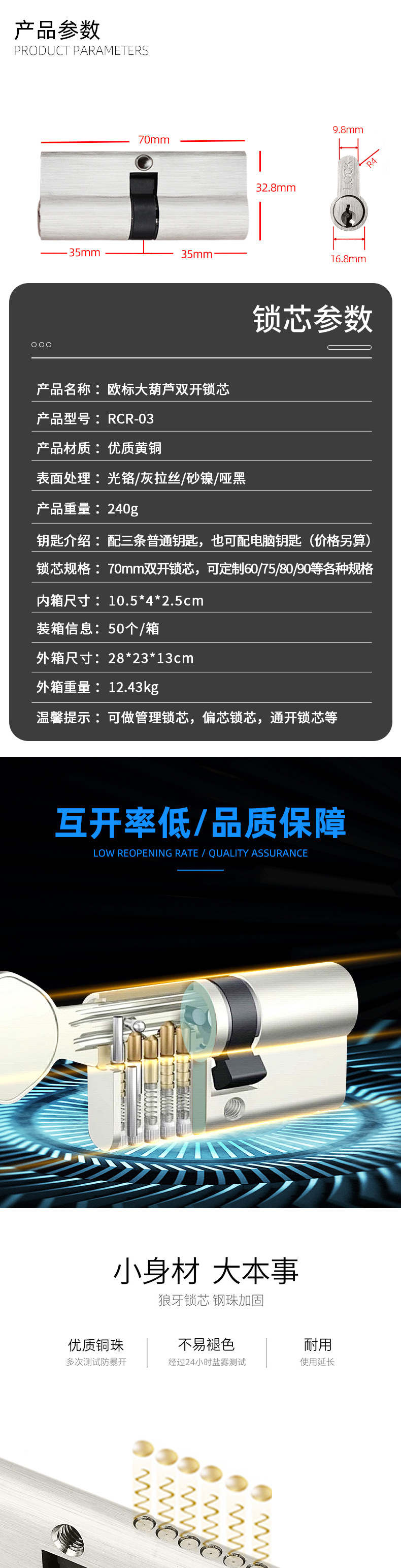 RCR-03 全銅歐標(biāo)雙開鎖芯