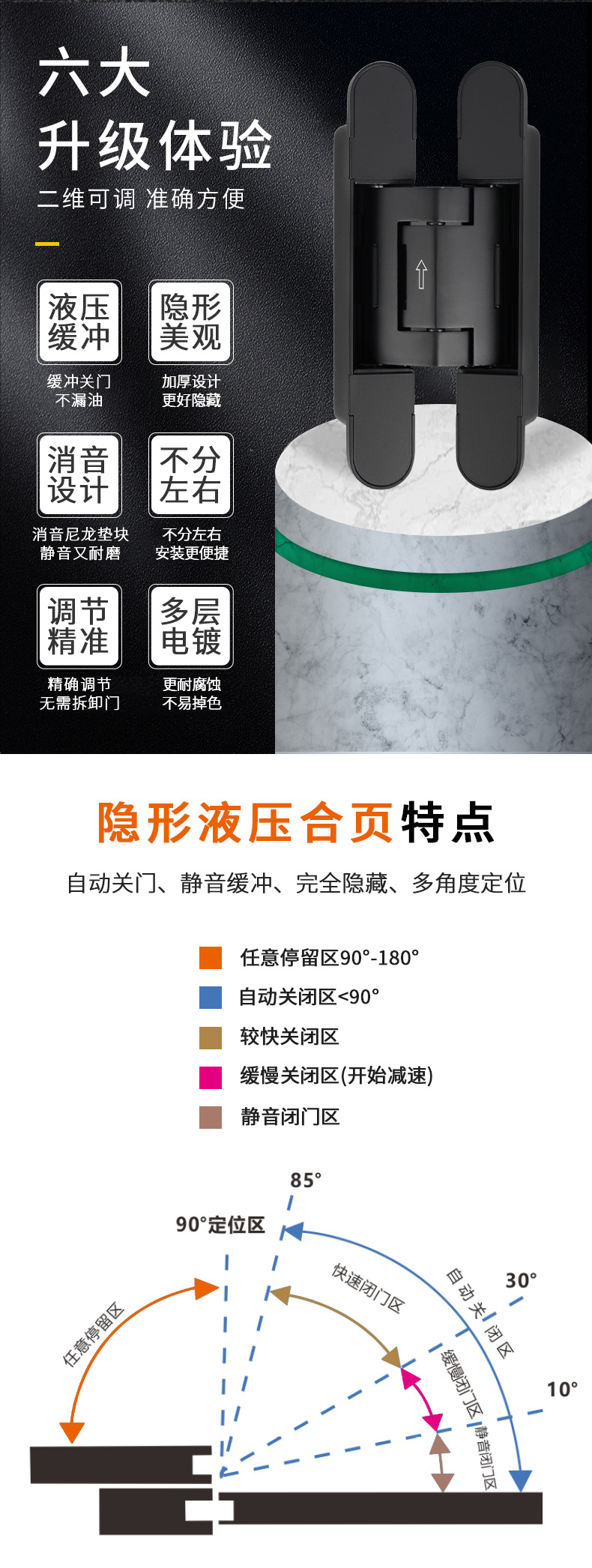 RHH-80 液壓緩沖合頁(yè)可調(diào)節(jié)隱形門(mén)暗鉸