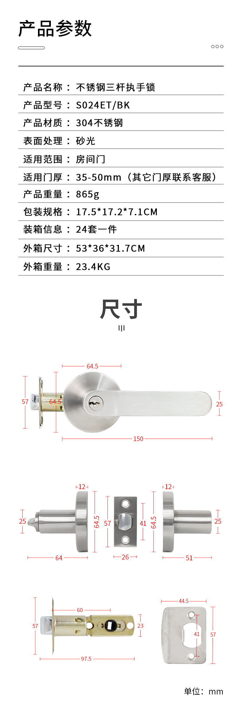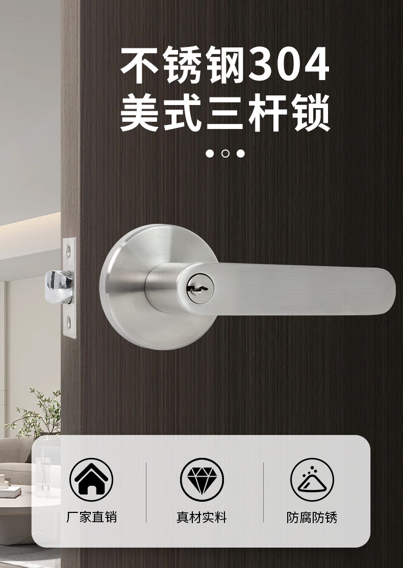 S024 不銹鋼實(shí)心圓形把手三桿鎖