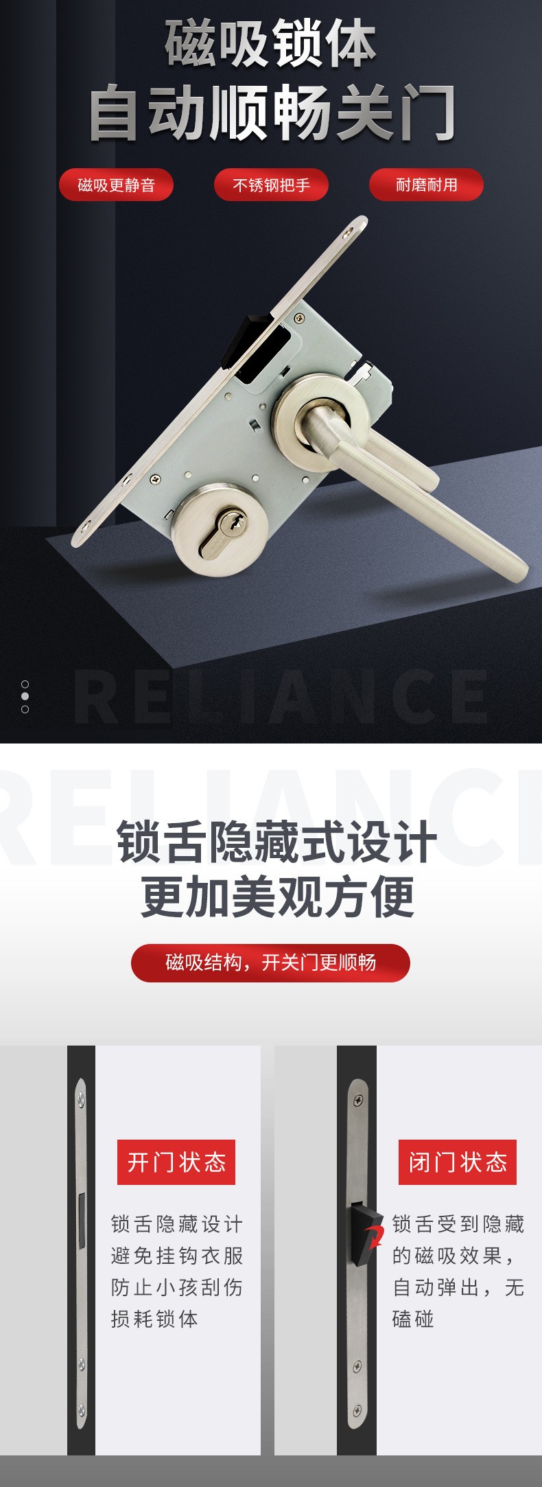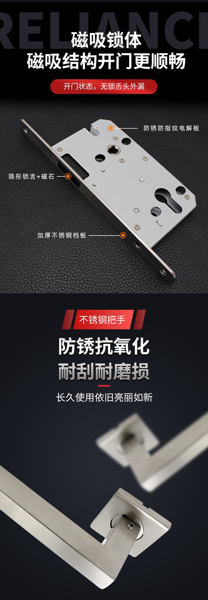RST-07 不銹鋼304歐式室內(nèi)門磁吸靜音分體門鎖