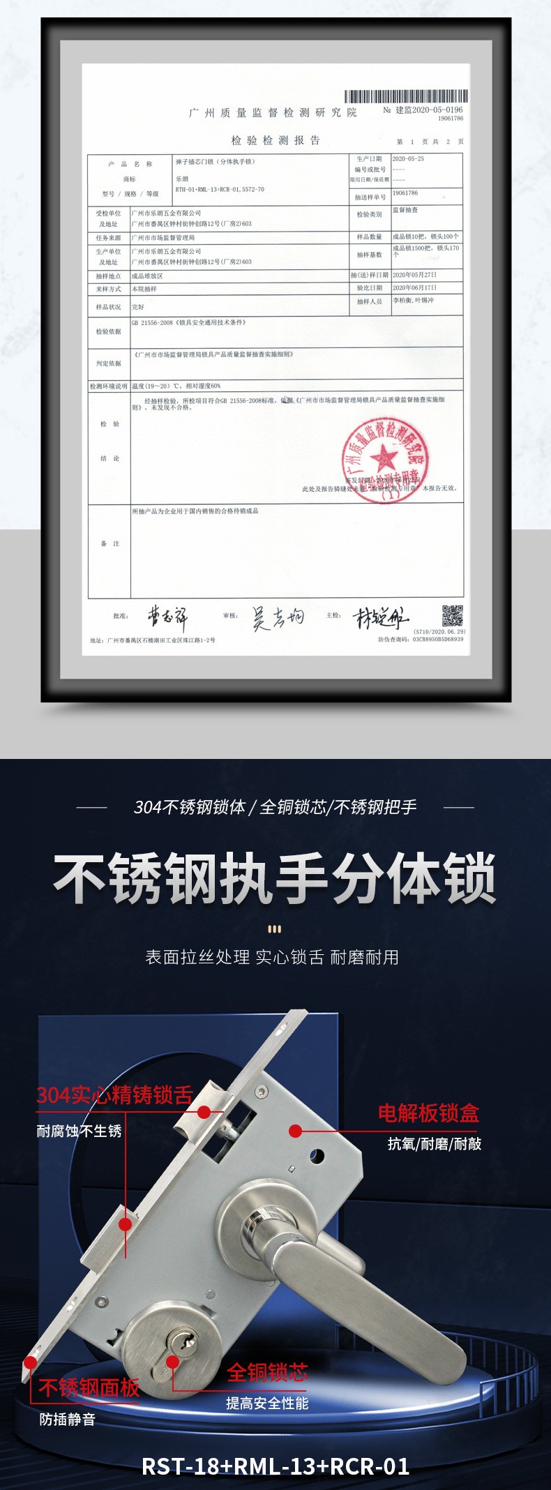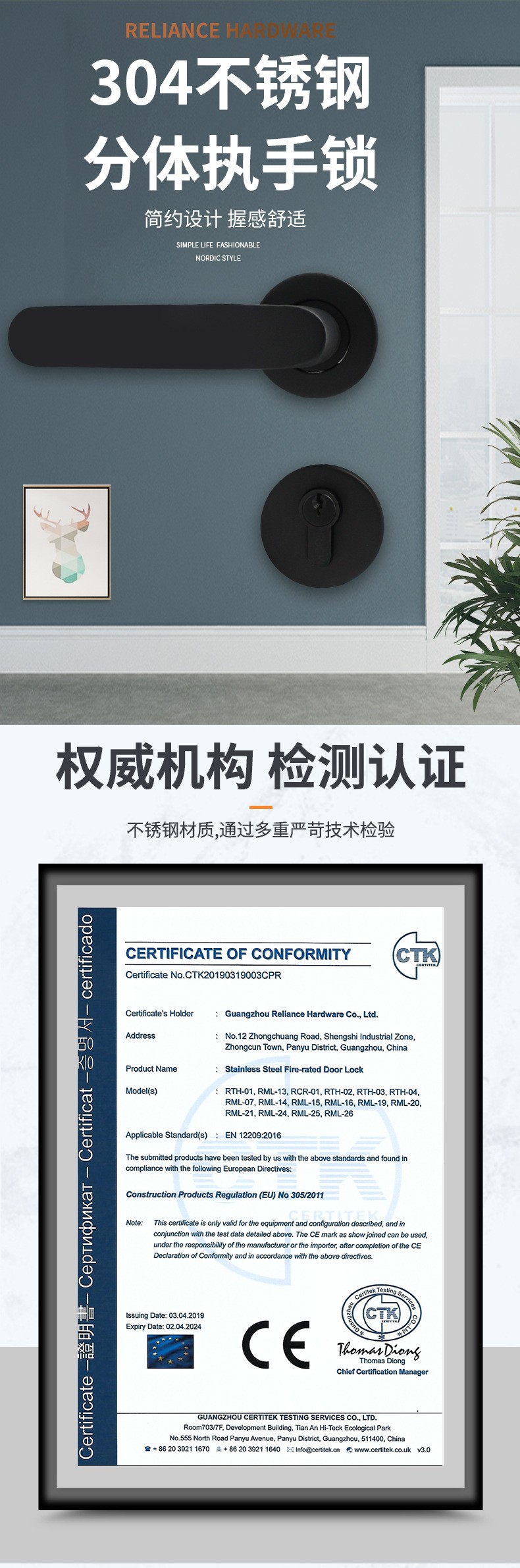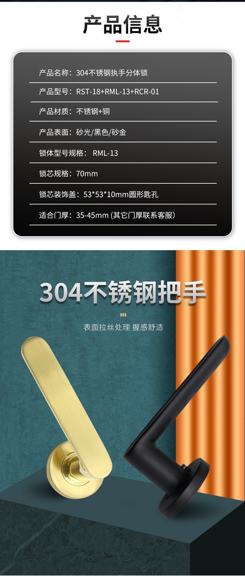 RST-18 不銹鋼304仿精鑄執(zhí)手分體機(jī)械門鎖