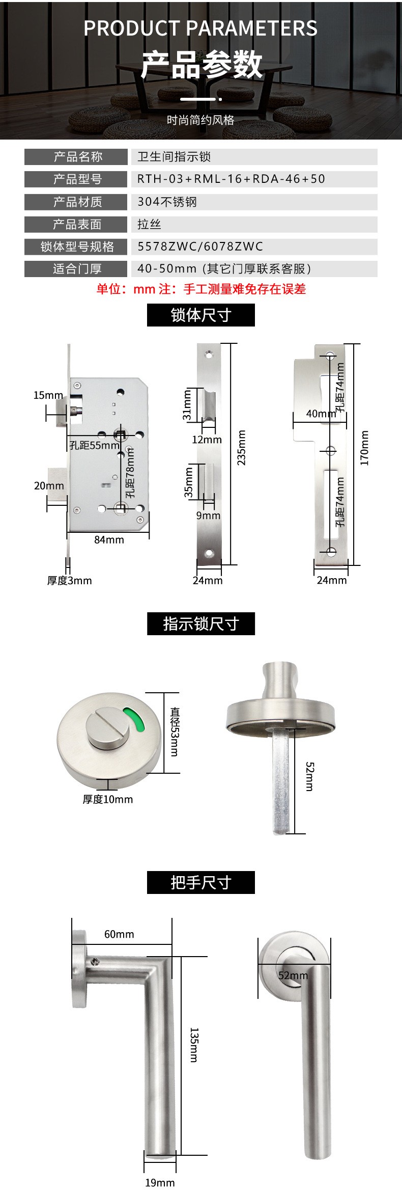 RTH-03 不銹鋼直角把手衛(wèi)浴紅綠指示鎖