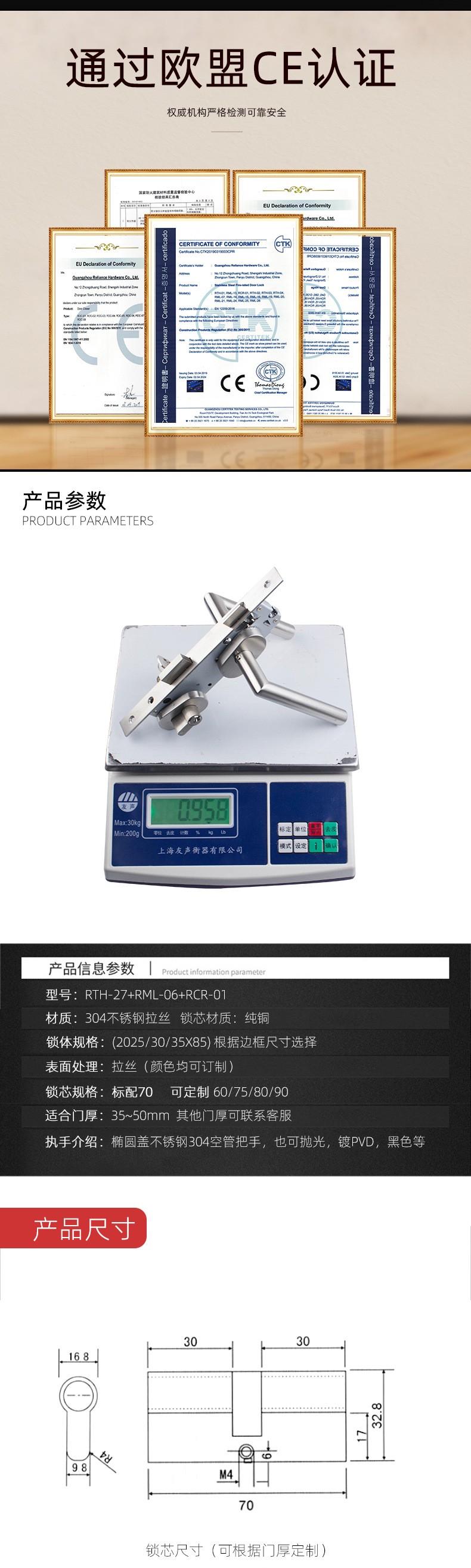 RTH-27 窄邊框斷橋鋁室內(nèi)門分體鎖