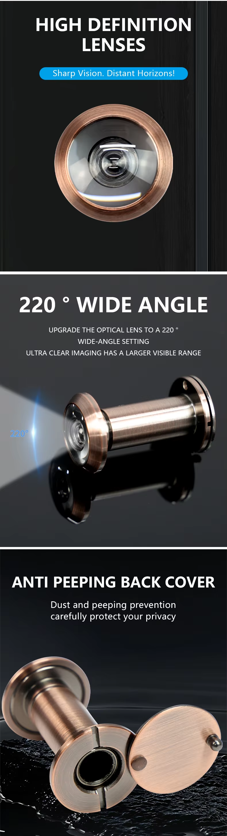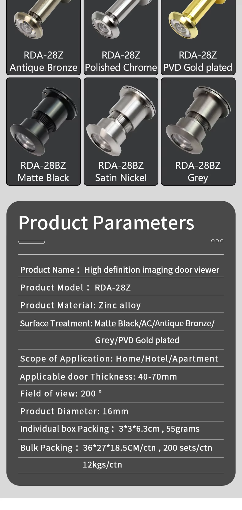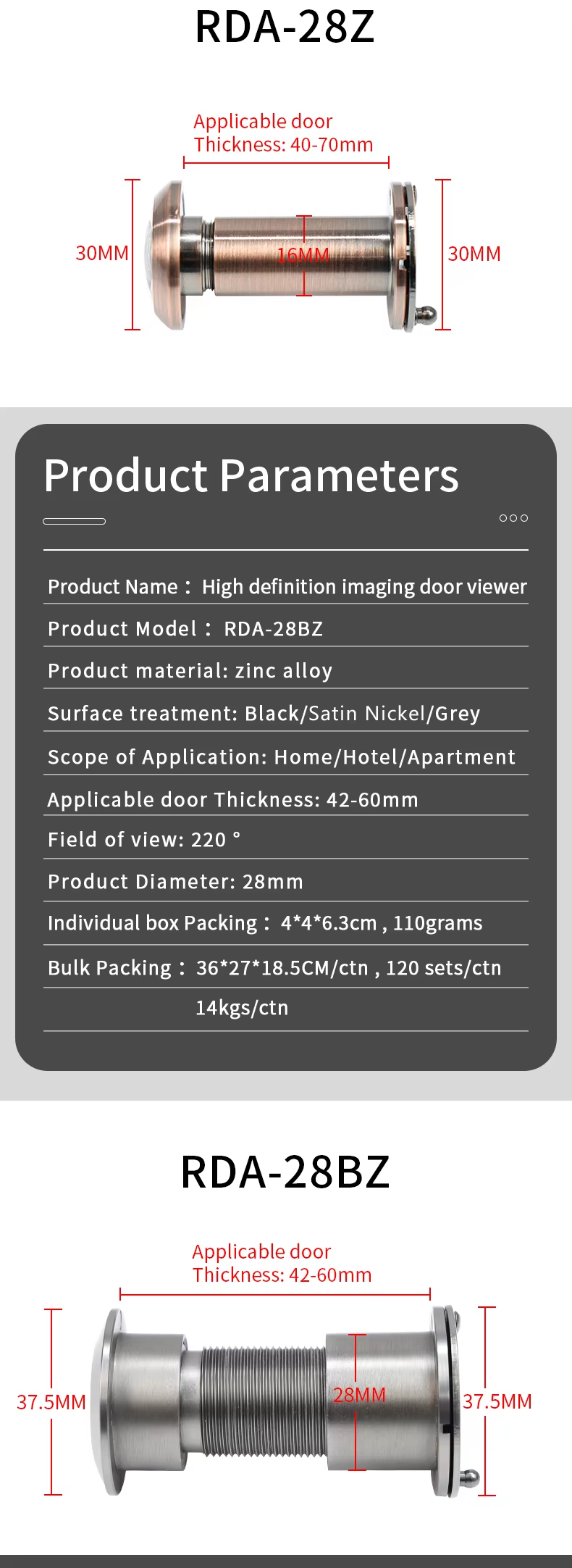 RDA-28Z Large Door Viewer 220-degree Rotating Privacy Cover