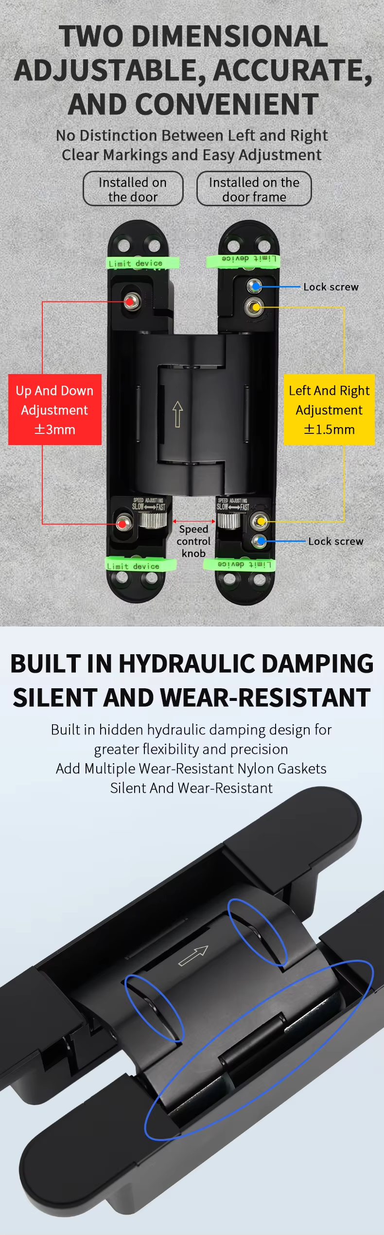 RHH-80 New Technique Hydraulic Buffer Adjustable Invisible Hinges